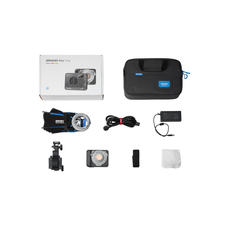 The Amaran Ray 120c RGB LED Monolight is a compact, full-color point-source LED designed for creators who need high output, portability, and full creative flexibility. At just 2 inches slim and 1.3 lb, the Ray 120c delivers 120W of power with exceptional color accuracy, multiple control options, and wide compatibility with Bowens modifiers. Ideal for studio, outdoor, and run-and-gun shooting, it includes essential accessories and travel-ready features.